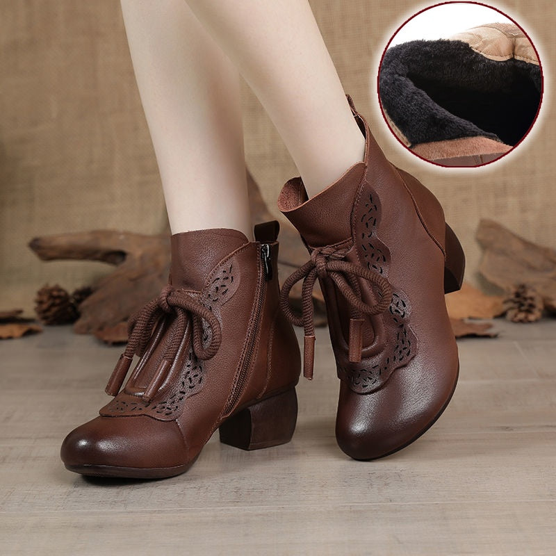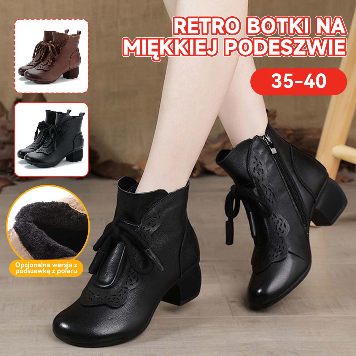 Damskie zimowe botki z miękkiej skóry, okrągły nosek, średni obcas, wyściółka z polaru, antypoślizgowe, miękka podeszwa【35-40】