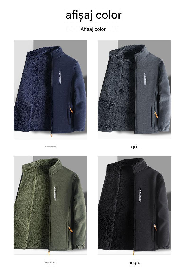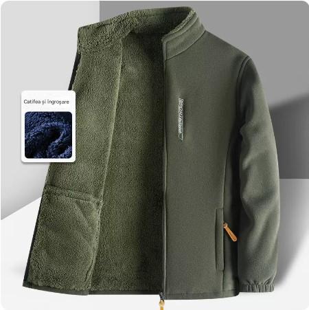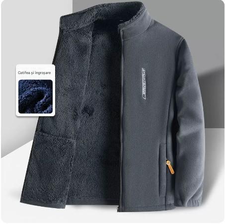 Męska kurtka polarowa (XL-6XL), ze stójką, zapinana na zamek, luźna i wygodna.