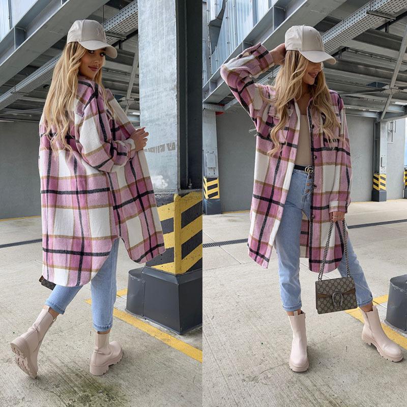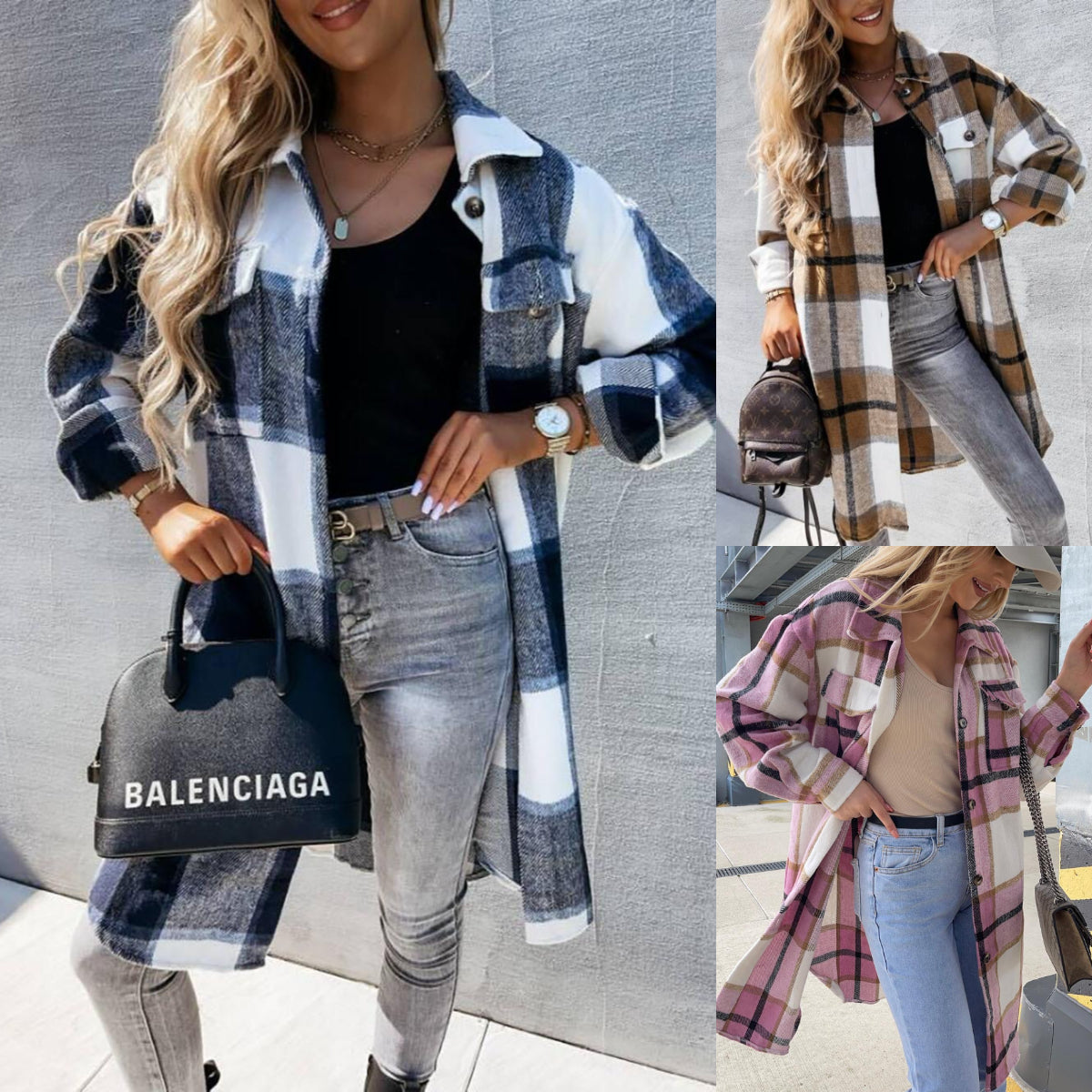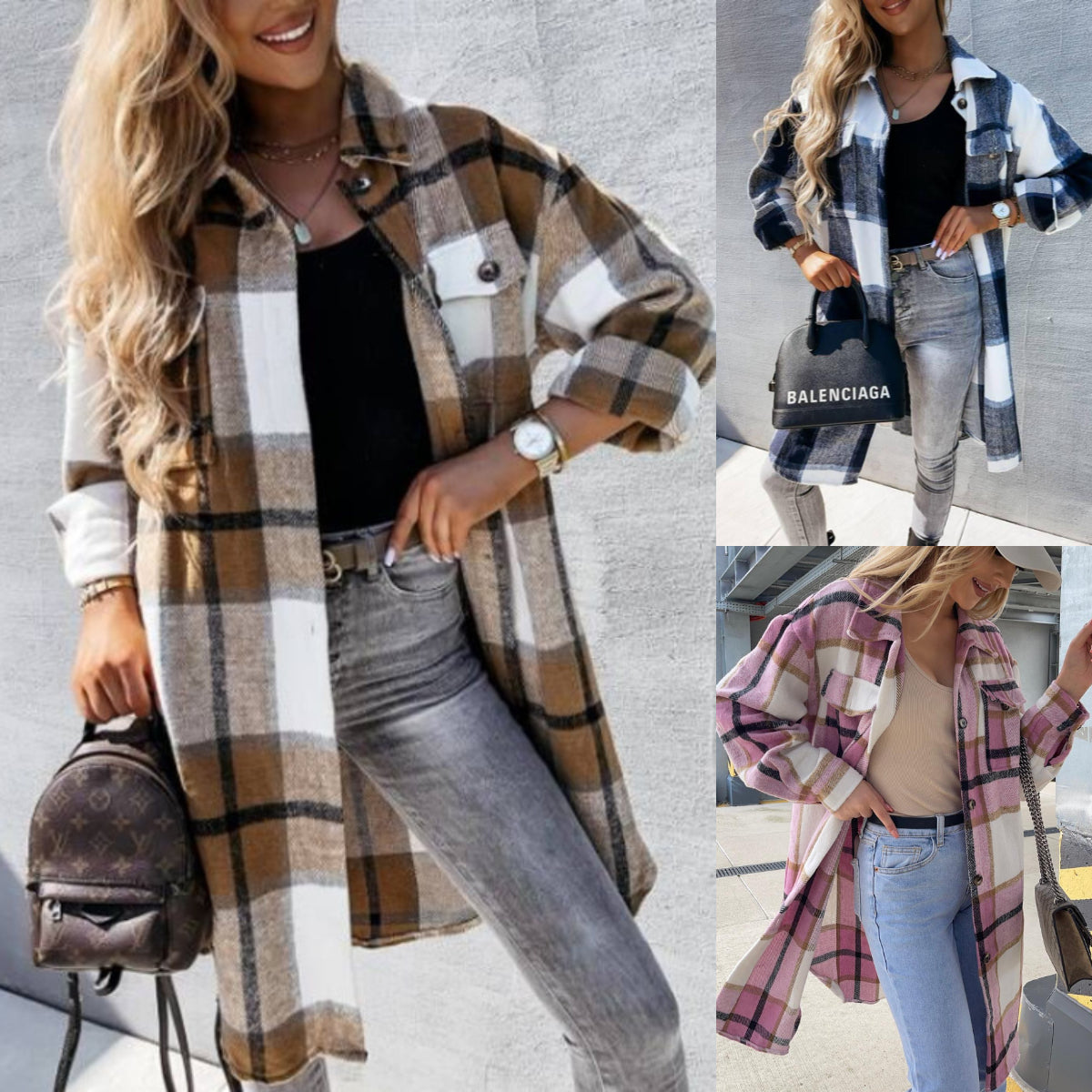 【S-2XL】Jachetă tip cămașă în carouri, lungime medie