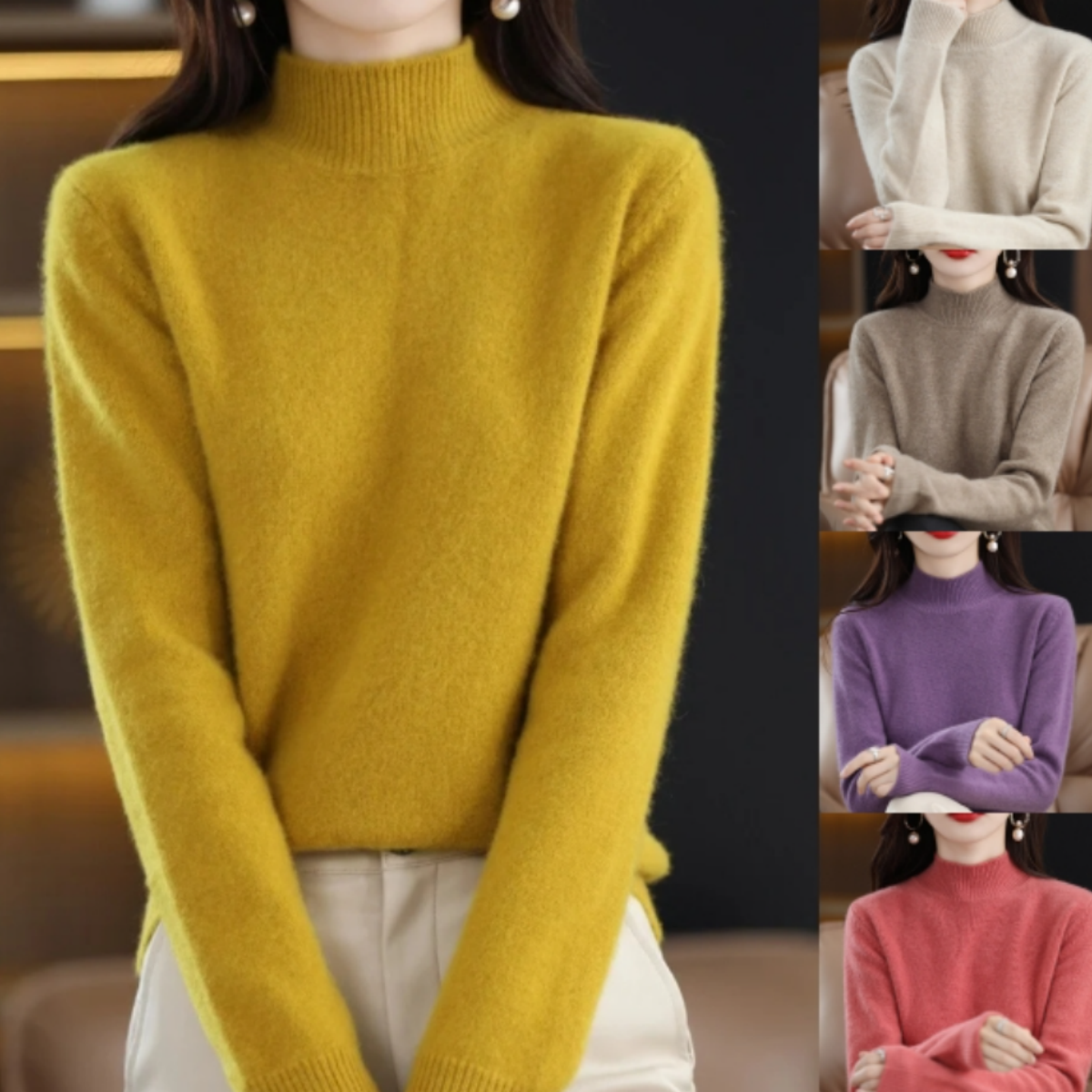 š„Jesenski in zimski stilš„Pleteni pulover s poloviÄnim ovratnikom in dolgimi rokavi, vsestranski