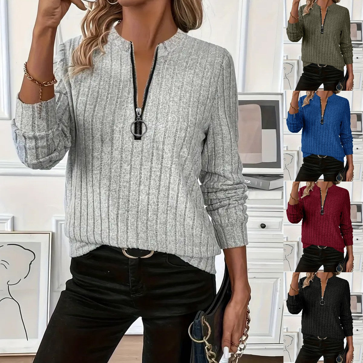 😍💥 Nova modna preprosta pletena jopa z dolgimi rokavi in zadrgo iz leta 2025